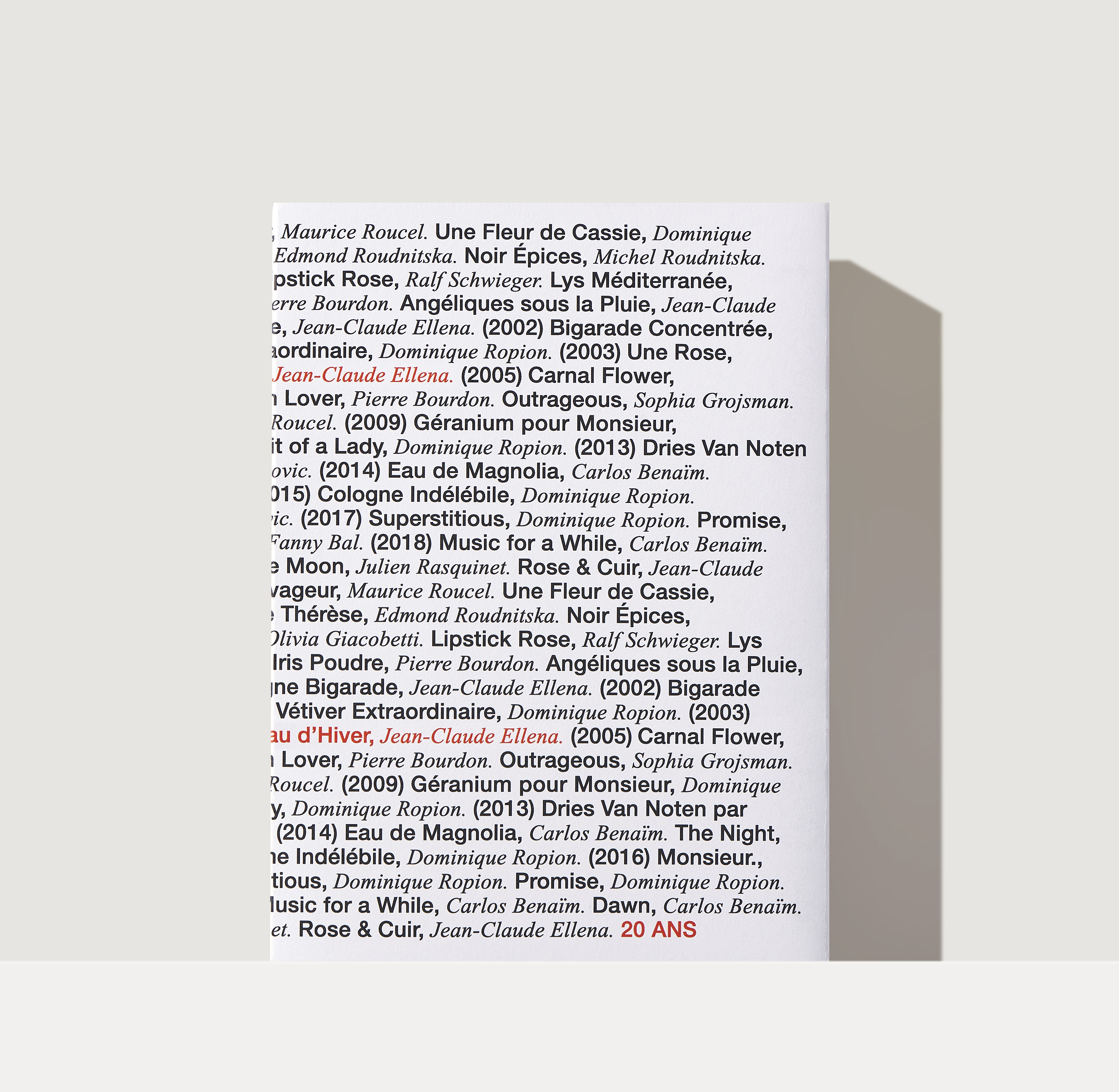 It’s 2002, and the dialogue on transparency with Jean-Claude Ellena continues; doubtless at the same table at Café de Flore, since Frédéric Malle has his own longstanding traditions there. The idea is to try and create an eau de cologne that would be transparent but “warm.” That is, a perfume which, like Guerlain’s Après l’Ondée, would exude a comforting sensuality, like an enveloping caress. A perfume that speaks of intimacy, a perfume for oneself rather than for others. A “murmur,” rounded and warm, to make you feel good and comfort you whenever you need it.